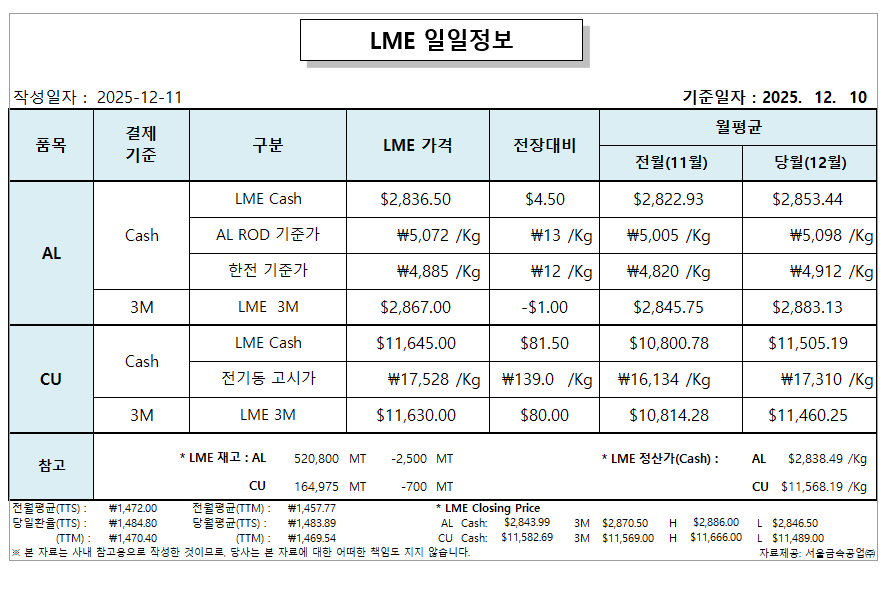 LME 일일 정보 2025-12-11