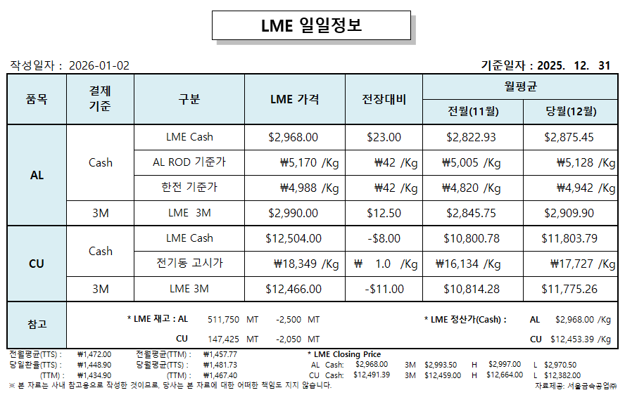 LME 일일 정보 2026-01-02