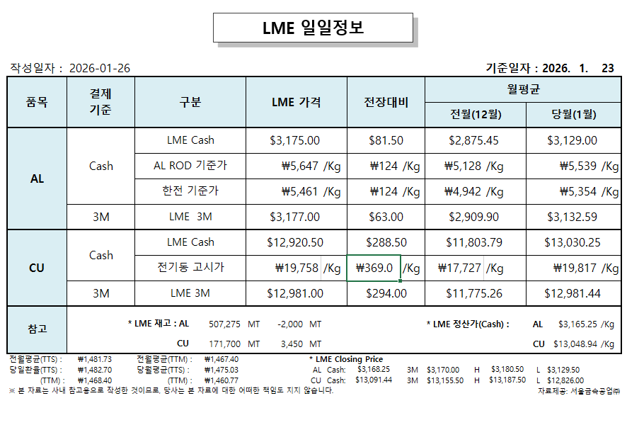 LME 일일정보 2026-01-26