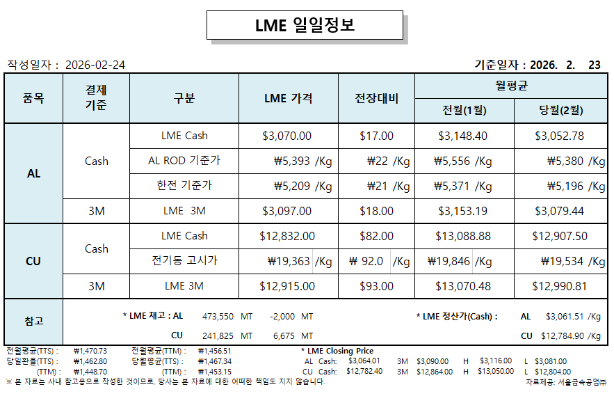 LME 일일 정보 2026-02-24