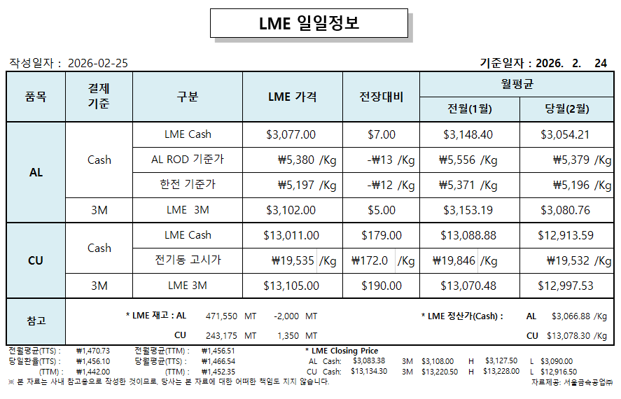 LME 일일 정보 2026-02-25