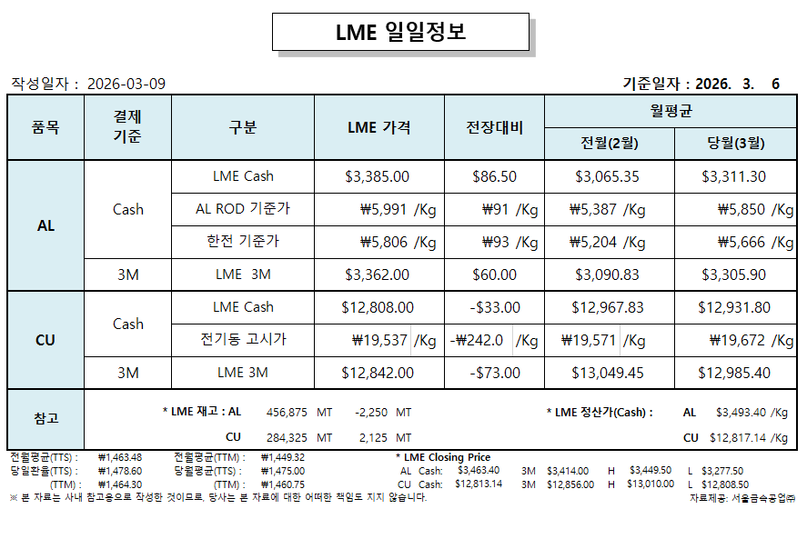 LME 일일 정보 2026-03-09
