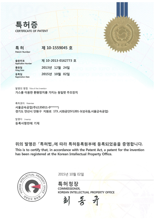 Patent on copper billet casting device
