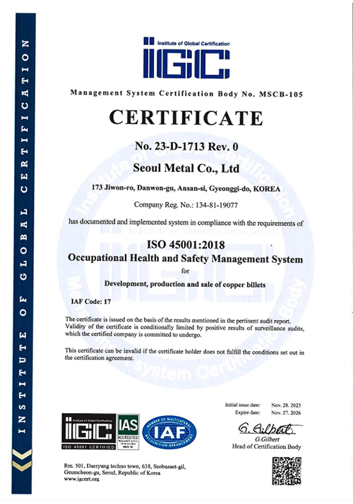 Seoul Metal Corporation ISO-45001