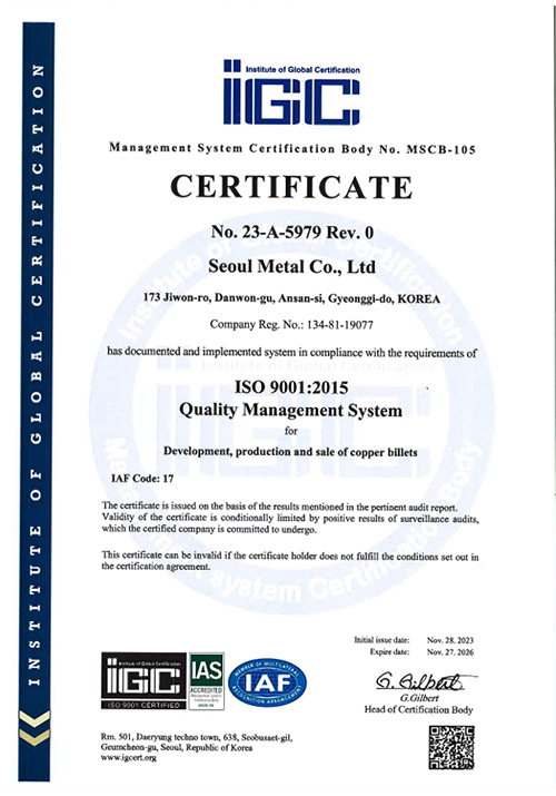 Seoul Metal Corporation ISO-9001