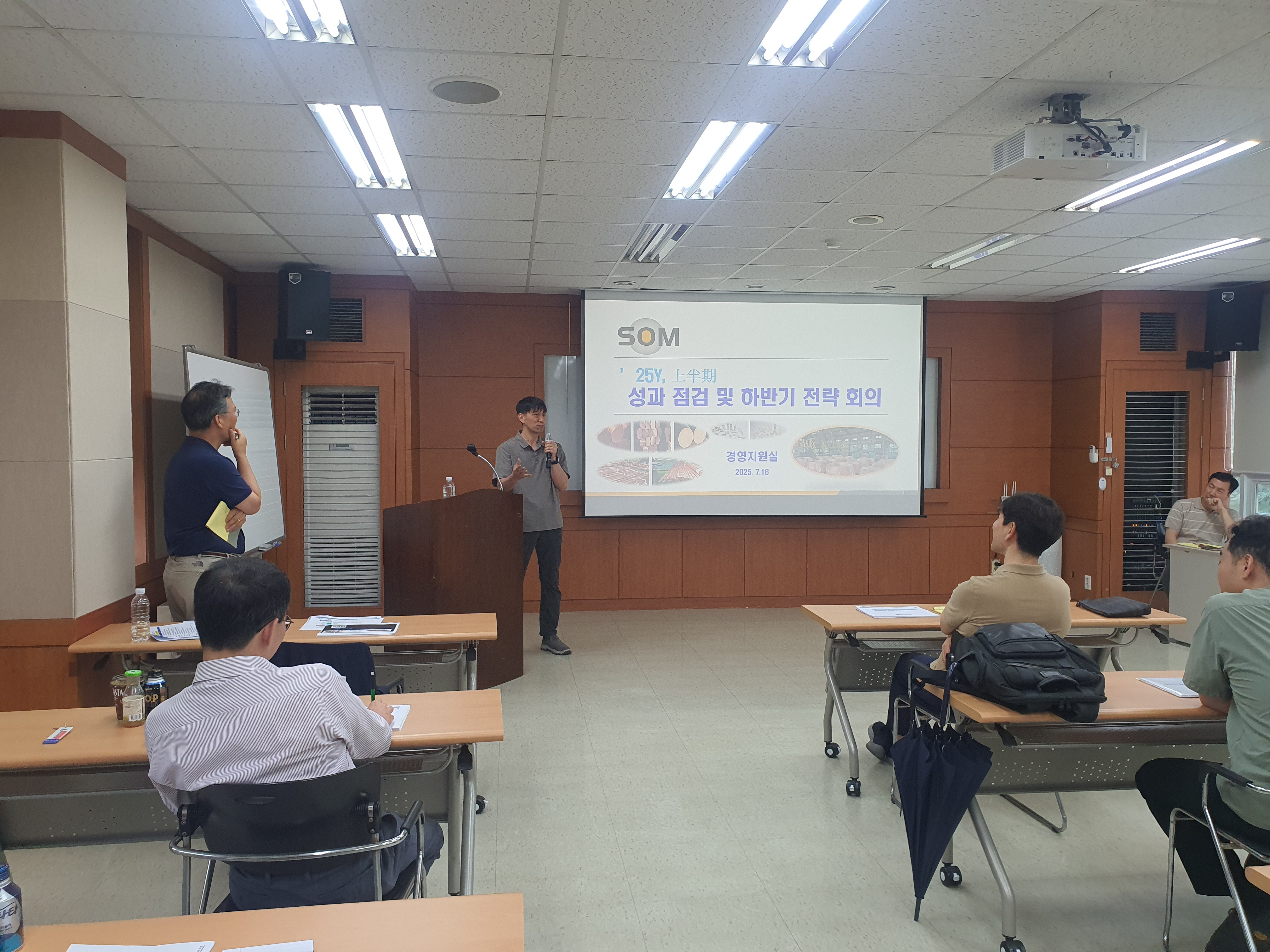산자부 선정 ‘뿌리기업 명가’ 및 ‘일하기 좋은 뿌리기업’ 그룹인 SOM은 2025년 7월 18일부터 1박 2일간 화성 ‘청호인재개발원’에서 탄핵과 新정부 출범, 관세, 환율 등 트럼프發 리스크 확대 등 국내외적으로 경제 상황이 급변하는 가운데에도 대미 수출 등으로 목표를 초과 달성한 상반기를 마무리하고 남은 6개월을 대비하기 위한 ‘25년 상반기 성과 점검 및 하반기 경영전략 Work-Shop’를 개최하였다.