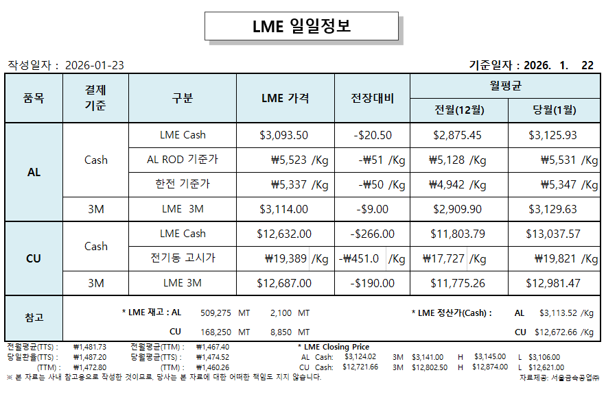LME 일일정보 2026-01-23